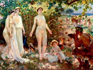 Eris, La dea dellla Discordia, offesa per non esservi stata invitata, gettò un pomo d’oro nella sala della festa, che recava scritto sopra un motto “alla più bella”.