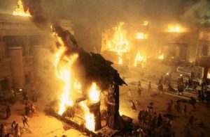 Intanto al far della notte, i Greci ritornano con la flotta verso Troia e sbarcate le truppe, penetrano nella città dalla breccia creata dagli stessi troiani per far passare il cavallo. L’astuto Sinone aprì un piccolo uscio che era al fianco del cavallo di legno e ne fa uscire i guerrieri greci che vi stavano nascosti: in un istante l’infelice città è piena di soldati che mettono tutto a ferro e a fuoco, spargendo ovunque violenza, terrore, sangue, morte e desolazione.