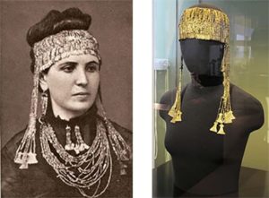 Sophia Engastromenou, moglie di Schliemann con i gioielli del cosiddetto tesoro di Priamo, 1873.