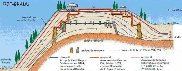 Gli “strati” dei resti delle varie città di Troia nei secoli
